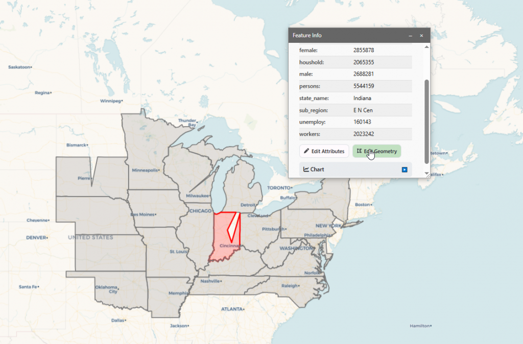 - Geometry Editing – Modify points, lines, and polygons interactively, enabling true in-browser spatial editing